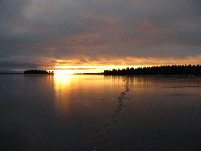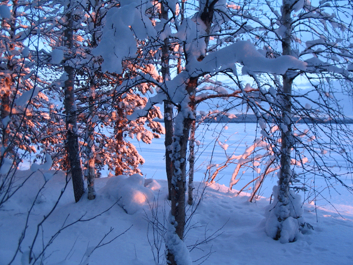 Helmikuinen aamu 2010. Kymmenen aikaan aurinko jo noussut.