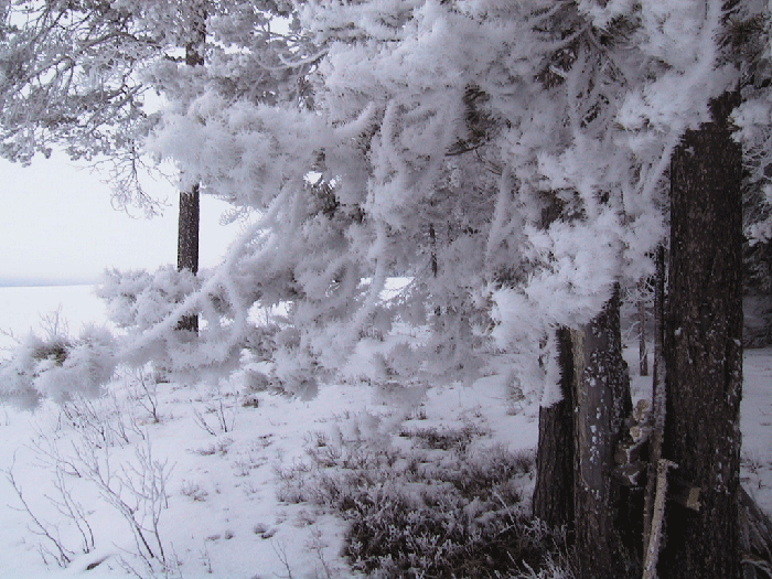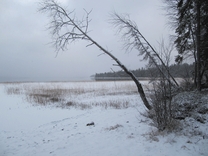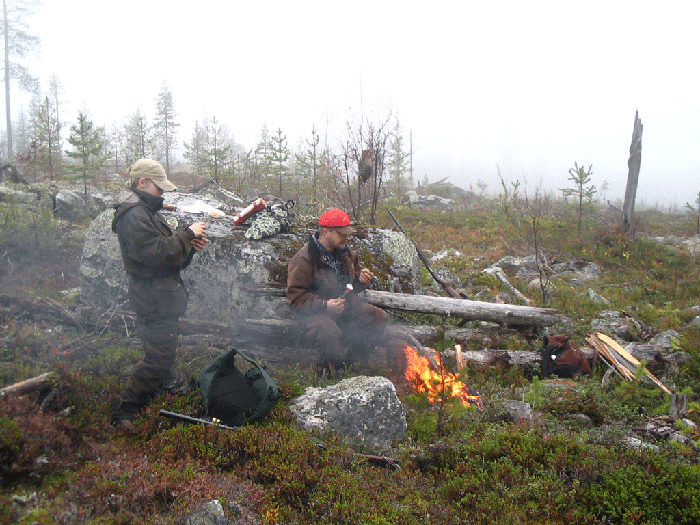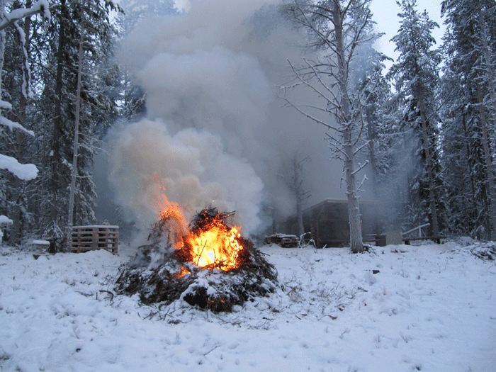 Joulukuu 2010. Risujen polttoa laavulla. Savut näkyivät
